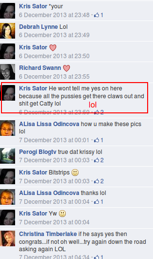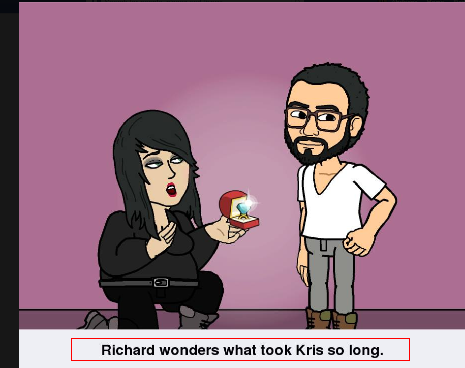 Notice how many times Krissy tells him that she’s proposing and how quiet Dickster goes?