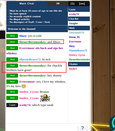When the news spread that both Boo and Soultrain had been banned, the UK Invasion cult began wild celebrations, drinking champagne, pulling one off, even informing the Vaughn world live on Scotty74’s cast….