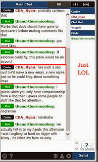 No, me neither, but maybe that’s because we aren’t hilariously paranoid. Then we also have Richard and Ryan (lol) who are convinced that every person on VaughnLive is Soultrain. The conversation between the two was motoring along, as boring as ever, then some viewer actually logged in, didn’t say anything, then logged out.