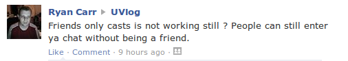But the strange thing is, he’s bought into the bullshit that comes from Cr3am, that Ivlog is safe and secure ( even though it’s been hacked twice in the last 2 weeks) and that you can have a fully functioning friends only audience.