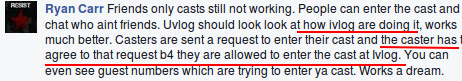 I will anyway 🙂 Ryan’s got this thing in his head about not letting any guests, or anyone else for that matter, in his cast, unless they are on his friends list.